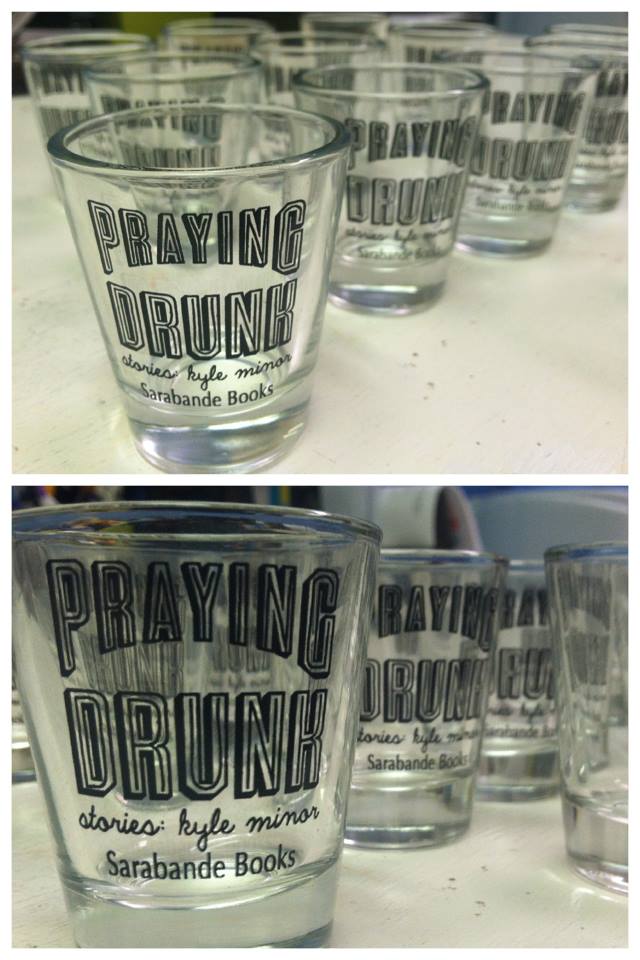 My beloved publisher and publicist commissioned these beautiful Praying Drunk shot glasses as a way to promote the book, and yesterday Carolyn Kellogg at the Los Angeles Times wrote a piece about them titled “How to make sure a book has a shot at getting noticed“: